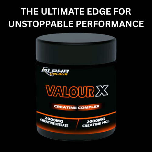 Valour X is Alpha Valour’s high-performance muscle-driven formula, engineered with a precision blend of elite strength-building and endurance-boosting ingredients designed to elevate every aspect of your training. Created for serious athletes and high-performers, Valour X delivers: